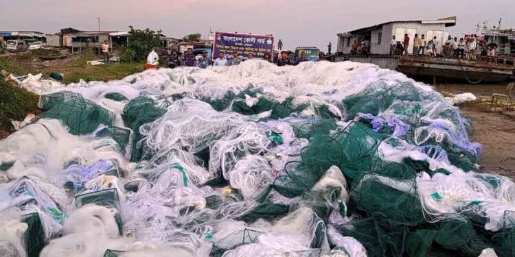 দোহারে কোস্ট গার্ডের অভিযান: অবৈধ জাল জব্দ