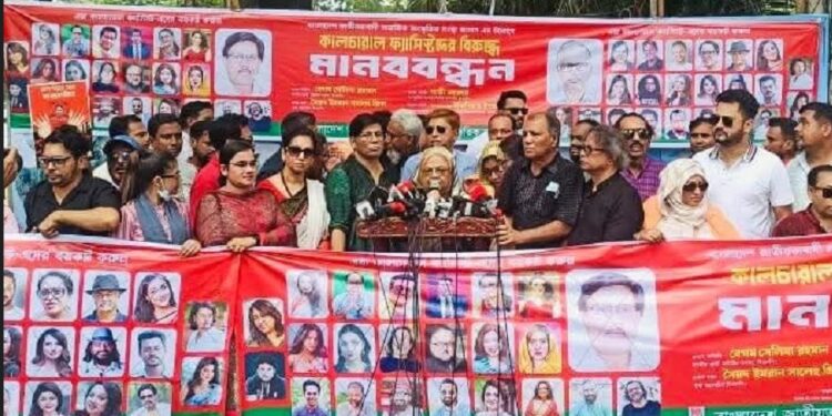 শিল্পী সমাজের বিভাজনে দায়ী ‘ফ্যাসিস্ট সরকার’, মানববন্ধনে বক্তাদের বক্তব্য