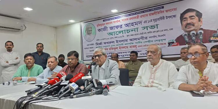 নির্বাচন প্রক্রিয়াকে ব্যাহত করার জন্য কিছু রাজনৈতিক মহল পরিকল্পিতভাবে নানা নতুন দাবি তুলে আসছে, এমন মন্তব্য করেছেন বিএনপির মহাসচিব মির্জা ফখরুল ইসলাম আলমগীর। বুধবার (২৭ আগস্ট) রাজধানীর জাতীয় প্রেসক্লাবে সাবেক প্রধানমন্ত্রী কাজী জাফর আহমদের ১০ম মৃত্যুবার্ষিকী উপলক্ষে ভাসানী অনুসারী পরিষদ ও ভাসানী জনশক্তি পার্টির আয়োজিত আলোচনা সভায় তিনি এ কথা বলেন।