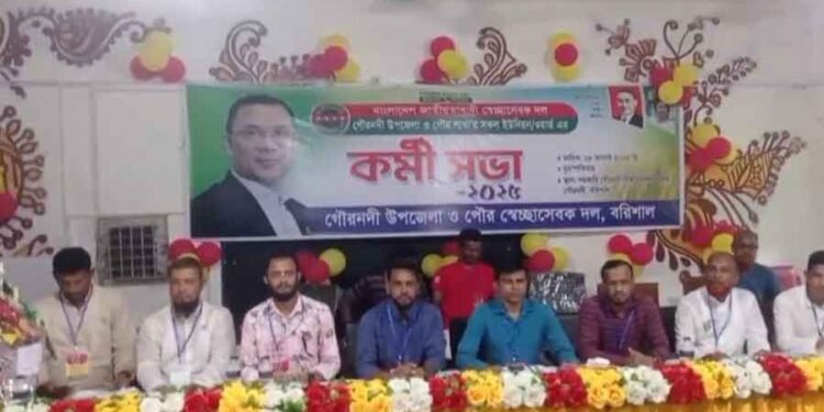 বরিশাল জেলার গৌরনদী উপজেলায় বাংলাদেশ জাতীয়তাবাদী সেচ্ছাসেবক দলের এক গুরুত্বপূর্ণ কর্মী সভা অনুষ্ঠিত হয়েছে। এই সভা গতকাল, অর্থাৎ বৃহস্পতিবার (২৮ আগস্ট) বিকেল ৪ টায় গৌরনদী সরকারি কলেজ মিলনায়তনে অনুষ্ঠিত হয়। সভায় দলের নেতৃবৃন্দ, সদস্যরা এবং বিভিন্ন ইউনিয়নের কর্মীরা অংশ নেন।