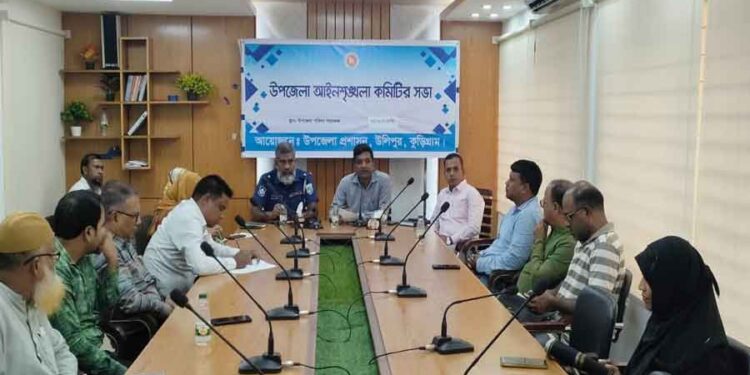 উপজেলা নির্বাহী অফিসার নয়ন কুমার সাহা উলিপুর থানার আওতাধীন এলাকাসহ পুরো উপজেলার প্রতিটি ইউনিয়নে চুরি, ছিনতাইসহ সকল প্রকার অপরাধ দমনের জন্য কঠোর আইন-শৃংখলা বাহিনীকে আহ্বান জানান। তিনি বলেন, তরুণ প্রজন্মের চরিত্র রক্ষায় মাদকদ্রব্য বিক্রি ও সেবন, তীর জুয়া ও অন্যান্য ধরনের জুয়া খেলা প্রতিরোধে শুধু পুলিশ ও আইনশৃংখলা বাহিনী নয়, সাধারণ জনগণকেও সামাজিকভাবে এগিয়ে আসার জরুরি আহ্বান। রবিবার (৩১ আগস্ট) সকাল ১১টায় উপজেলা পরিষদ সভাকক্ষে অনুষ্ঠিত উপজেলা আইন-শৃংখলা কমিটির নিয়মিত সভায় তিনি এই কথাগুলো বলেন। সভায় উপস্থিত ছিলেন অফিসার ইনচার্জ জিল্লুর রহমান, কৃষি কর্মকর্তা ও কৃষিবিদ মোশারফ হোসেন, সিনিয়র মৎস্য কর্মকর্তা শামীমা আক্তারসহ বিভিন্ন কর্মকর্তা ও স্থানীয় জনপ্রতিনিধিরা। বক্তারা উলিপুর পোস্ট অফিস মোড় থেকে আমিন মোড় পর্যন্ত সড়কের প্রতিটি ফুটপাত দখলমুক্ত করার জন্য ডাক দেন। তারা বলেন, যানজট কমাতে এবং পথচারীদের নির্বিঘ্ন চলাচলের জন্য এই সড়ক পরিষ্কার ও দখলমুক্ত রাখতে হবে, বিশেষ করে ভাসমান হকারদের অবাধ চলাচল বন্ধ করতে হবে। এ ছাড়াও, রাস্তার উপর অবৈধভাবে মালামাল স্তুপ করে রাখার কারণে বাসটার্মিনাল পর্যন্ত যাত্রীদের চলাচলে সমস্যা সৃষ্টি হচ্ছে, যা দ্রুত সমাধানের জন্য সংশ্লিষ্টদের প্রতি আহ্বান জানান। আরও বক্তারা বলেন, ড্রাইভার ও চালকদের সুবিধার্থে নাম্বারপ্লেটবিহীন অবৈধ অটোরিক্সা দ্রুত বৈধ করে সেখানে মানসম্পন্ন সংখ্যা লাগানোর ব্যবস্থা নিতে হবে। এতে সরকারের রাজস্বও বৃদ্ধি পাব আর উলিপুর অঞ্চলে মাদক পরিবহন, চুরি-ছিনতাই ও রাহাজানির মতো অপরাধ ঠেকানো সম্ভব হতে পারে। সাংবাদিক রিপোর্ট: এমকে।