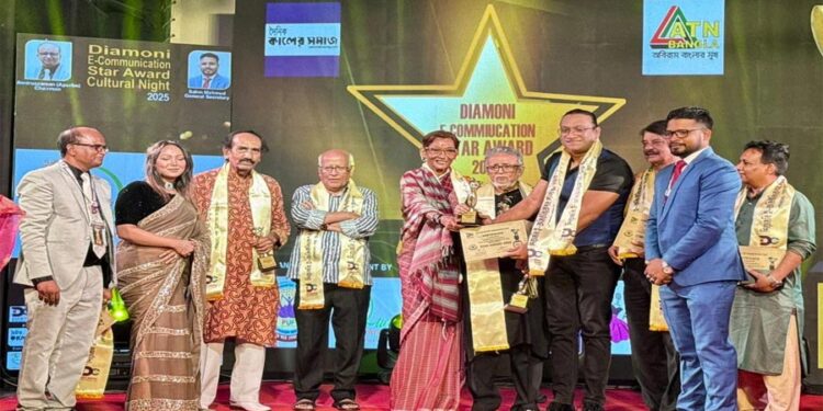 আজ শুক্রবার (২৯ আগষ্ট) রাজধানীর সেগুন বাগিচায় কেন্দ্রীয় কচি কাঁচার মলে এক জাঁকজমকপূর্ণ অনুষ্ঠানে দিয়ামনি ই-কমিউনিকেশন স্টার অ্যাওয়ার্ড ২০২৫ প্রদান করা হয়। দেশের স্বনামধন্য মিডিয়া ব্যক্তিত্ব, উদ্যোক্তা ও বিভিন্ন সংগঠন অফিসের সদস্যরা এই অনুষ্ঠানে অংশগ্রহণ করেন। এই অ্যাওয়ার্ডের মাধ্যমে দেশের শক্তিশালী মিডিয়া ও উদ্যোগের অগ্রগামী ব্যক্তিত্বদের সম্মান জানানো হয়।