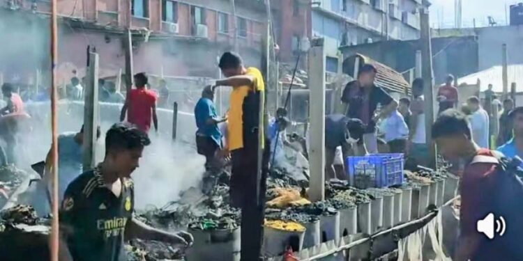 চান্দনা চৌরাস্তার কাঁচাবাজারে অগ্নিকাণ্ডে ৩৫টি দোকান পুড়ে ছাই