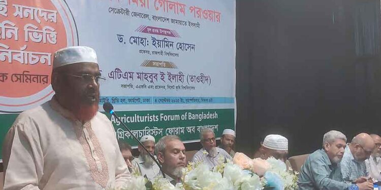 বৃহস্পতিবার (৪ সেপ্টেম্বর) রাজধানীর ফার্মগেটে অবস্থিত কেআইবি থ্রিডি মিলনায়তনে আয়োজিত ‘জুলাই সনদের আইনি ভিত্তি ও নির্বাচন’ বিষয়ে কেন্দ্রীয় সেমিনারে তিনি এসব কথা বলেন। এই অনুষ্ঠানটি আয়োজন করে অ্যাগ্রিকালচারাল ফোরাম অব বাংলাদেশ (এএফবি)।