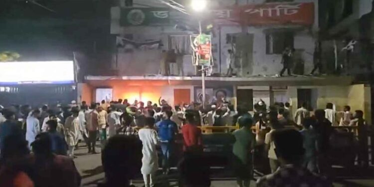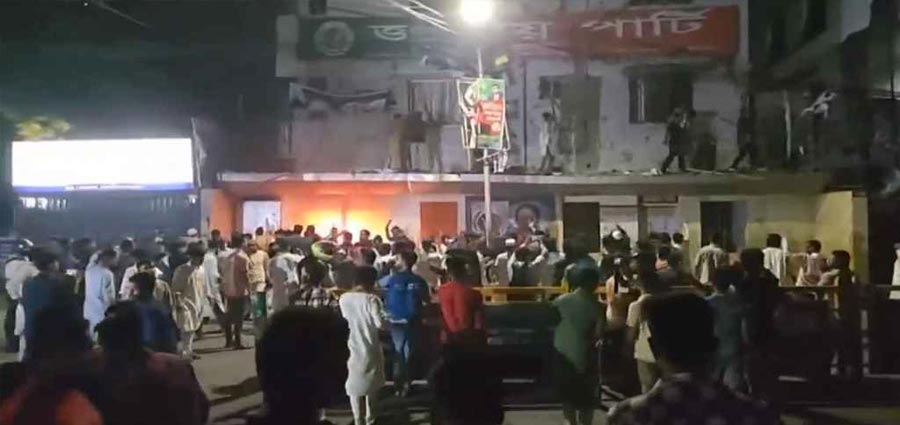 রাজধানীতে জাতীয় পার্টির কেন্দ্রীয় কার্যালয়ে আবার ভাঙচুর ও অগ্নিসংযোগের ঘটনা ঘটেছে। শুক্রবার (৫ সেপ্টেম্বর) সন্ধ্যার পরে দলটির কার্যালয়ে বিক্ষুব্ধ জনতা হামলা চালায়। ওই সময় তারা কার্যালয়ের ভিতরে থাকা আসবাবপত্রে আগুন ধরিয়ে দেয়। ঘটনার পেছনে মূল কারণ হিসেবে গণঅধিকার পরিষদের সভাপতি নুরুল হক নুরের ওপর আইনশৃঙ্খলা বাহিনীর হামলার প্রতিবাদে সংগঠিত স্মরণসভা ও বিক্ষোভকে উল্লেখ করা হচ্ছে। সেই আসঁরেই নেতাকর্মীরা পল্টনের জাতীয় পার্টির কেন্দ্রীয় কার্যালয়ে যাওয়ার পথে এই হামলা হয়। ঘটনাটি কেবলমাত্র এই বছর নয়, এর আগে গত ৩০ আগস্টও একই কার্যালয়ে হামলা ও ভাঙচুরের ঘটনা ঘটে। ওইদিন সন্ধ্যার কিছু সময় আগে গণঅধিকার পরিষদের নেতাকর্মীরা কার্যালয়ের সামনে বিক্ষোভ মিছিল করে। এরপর পুলিশকে লক্ষ্য করে ইটপাটকেল ছোড়া হয় ও পরিস্থিতি শান্ত করতে নেতাকর্মীদের কিছুজন চেষ্টা চালায়। হঠাৎ করে কয়েকজন নেতাকর্মী কার্যালয়ের সামনে স্লোগান দিতে দিতে ভাঙচুর চালায়। এসময় পুলিশ রমনা থানার দিকে সরে গেলে, তারা কার্যালয়ের নিচের স্টোররুমের গেট ভেঙে দেয় ও অগ্নিসংযোগ করে। পরিস্থিতি নিয়ন্ত্রণে টিয়ারশেল ও জলকামান ব্যবহার করে পুলিশ। এতে করে অবস্থা কিছুটা শান্ত হলে আগুন নিভিয়ে ফেলা হয়। এই সব ঘটনায় স্থানীয় প্রশাসন, পুলিশ ও নেতাকর্মীদের মধ্যে আতঙ্ক ও উত্তেজনা সৃষ্টি হয়েছে। পাশাপাশি ভূমিকায় থাকা বিভিন্ন পক্ষ বলছে, এই ঘটনা কি শুধুই রাজনৈতিক প্রতিহিংসা না কোনও অরাজকতা, তা তদন্তে পুরোপুরি যাচাই করছে আইনশৃঙ্খলা বাহিনী।