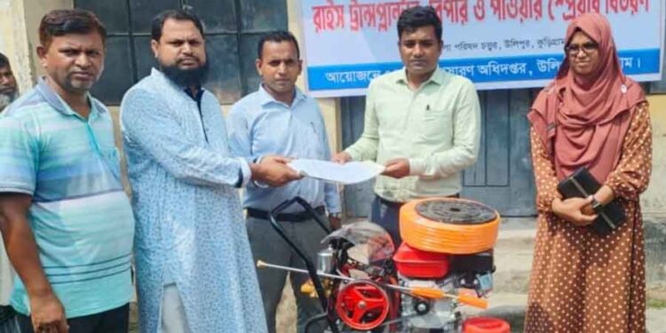 কুড়িগ্রামের উলিপুর উপজেলায় মাসকলাইয়ের কৃষি আবাদ ও উৎপাদন বাড়ানোর লক্ষ্যে কৃষকদের মধ্যে বিনামূল্যে সার, বীজ এবং কৃষি সরঞ্জাম বিতরণ করা হয়েছে। মঙ্গলবার (৯ সেপ্টেম্বর) সকাল ১১টার দিকে উপজেলা কৃষি অফিসের প্রাঙ্গণে ‘খরিপ-২ মৌসুমে কৃষি প্রণোদনা কর্মসূচি’ এর আওতায় এ বিতরণ কার্যক্রমের উদ্বোধন করা হয়। অনুষ্ঠানে উপস্থিত ছিলেন উপজেলা নির্বাহী কর্মকর্তা নয়ন কুমার সাহা, উপজেলা কৃষি কর্মকর্তা কৃষিবিদ মোশাররফ হোসেন, অতিরিক্ত কৃষি অফিসার আফরোজা পারভীন রিফা এবং অন্য দপ্তর ও উপজেলা প্রশাসনের কর্মকর্তারা। এ ঘটনায় ২০০ জন কৃষকের মধ্যে প্রত্যেককে ৫ কেজি মাসকলাই বীজ, ১০ কেজি ডিএপি সর, ও ৫ কেজি এমওপি (পটাশ) সার বিতরণ করা হয়। একই সময়ে কৃষকদের জন্য আধুনিক কৃষি প্রযুক্তি হিসেবে ধান কাটা যন্ত্র (রিপার), ‘রাবি ট্রান্সপ্ল্যান্টার’ এবং পাওয়ার এক্স মেশিনও বিতরণ করা হয়। কৃষি কর্মকর্তা মোশাররফ হোসেন জানান, এ কার্যক্রমের মূল লক্ষ্য হলো কৃষকদের আধুনিক কৃষি প্রযুক্তির সঙ্গে সংহত করে উৎপাদন বাড়ানো এবং খরচ কমানো।