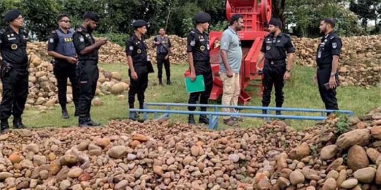এর আগে, সোমবার (৮ সেপ্টেম্বর) বিকেলে সিলেট সদর উপজেলার ধোপাগুল এলাকায় অভিযান চালিয়ে ১০ হাজার ঘনফুট পাথর উদ্ধার করেছিল র্যাব-৯ ও জেলা প্রশাসনের যৌথ টিম।