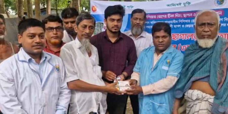 বরিশালের গৌরনদীতে বিনামূল্যে আট হাজার চার শ’ ছাগল ও ভেড়াকে পিপিআর রোগের টিকা দেওয়ার জন্য বিশাল কর্মসূচির উদ্বোধন অনুষ্ঠিত হয়েছে। উপজেলা প্রাণিসম্পদ দপ্তরের আয়োজনে বৃহস্পতিবার সকালে গৌরনদী হাইওয়ে থানার সংলগ্ন সুন্দরদী মহল্লায় এই অনুষ্ঠানে প্রধান অতিথি হিসেবে উপস্থিত ছিলেন উপজেলা প্রাণিসম্পদ কর্মকর্তা ডা. পলাশ সরকার। অনুষ্ঠানে আরও উপস্থিত ছিলেন উপজেলা ভেটেরিনারি সার্জন ডা. মাহমুদুল হাসান ফরিদ, ডা. শেখ আরিফুর রহমান, উপ-সহকারী প্রাণিসম্পদ কর্মকর্তা আবুল হাসান আজাদ, প্রান্তিক খামারি ও প্রাণিসম্পদ কর্মীরা। অনুষ্ঠানে খামারিদের মধ্যে ছাগল ও ভেড়ার কৃমি নাশক ট্যাবলেট ও ভিটামিন বিতরণ করা হয়। বাবার বক্তব্যে ডা. পলাশ সরকার জানান, ‘পিপিআর’ ছাগল ও ভেড়ার জন্য এক মারাত্মক ভাইরাসজনিত সংক্রমণ রোগ, যার সংক্রমণে ছাগলের মৃত্যুহার শুরুর দিকে শতকরা ৫০ থেকে ৮০ ভাগে পৌঁছে যায়। দেশের প্রান্তিক জনগোষ্ঠী অনেক ক্ষেত্রেই এ রোগের কারণে আর্থিক ক্ষতির সম্মুখীন হন, কারণ তারা তাদের জীবিকা চালানোর জন্য ছাগল ও ভেড়া পালন করে থাকেন। প্রতিরোধে নিয়মিত ও সঠিক পদ্ধতিতে টিকা প্রদান জরুরি, যাতে এই রোগ থেকে শতভাগ মুক্ত থাকা যায়। বিশ্ব প্রাণিসম্পদ স্বাস্থ্য সংস্থা ২০৩০ সালের মধ্যে এই রোগের নির্মূলের লক্ষ্য নিয়ে দেশের সব জেলা ও উপজেলায় এ কার্যক্রম চালু করেছে। আজকের এই উদ্যোগের মাধ্যমে দেশের প্রান্তিক খামারিদের মধ্যে ছাগল ও ভেড়া পিপিআর রোগের ঝুঁকি কমাতে গুরুত্বপূর্ণ ভূমিকা রাখবে বলে আশা করা হচ্ছে।