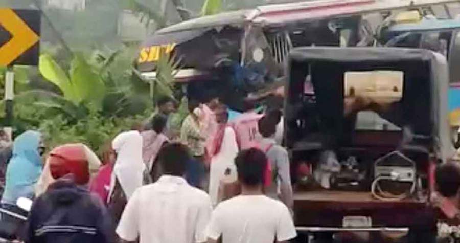 ময়মনসিংহের ভালুকায় দুই বাসের মুখোমুখি সংঘর্ষের ঘটনায় হতাহতের ঘটনা ঘটেছে। এই দুর্ঘটনায় দুইজন নিহত এবং অন্তত ১০ জন আহত হন। শনিবার (১৩ সেপ্টেম্বর) সকালে ভরাডোবা তাসরিফ কটন মিলের সামনে, ময়মনসিংহগামী রাস্তার ওপর এই দুর্ঘটনা ঘটে।