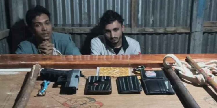 গ্রেপ্তারকৃতরা হলেন, গাজীপুরের জয়দেবপুর উপজেলার নয়নপুর গ্রামের কাঞ্চন মীরের ছেলে মীর মোহাম্মদ শাকিল (২১) ও ভোলা জেলার সদর থানার মোসারফ হোসেনের ছেলে শিহাব মোশারফ সৈকত (২৩)। পুলিশ জানায়, ওই সময় তারা পুলিশ পরিচয়ে বিভিন্ন ব্যবসা প্রতিষ্ঠানে গিয়ে খেলনা পিস্তল ও লোহার পাইপ দেখিয়ে ভুক্তভোগীদের থেকে চাঁদা আদায়ের অপকর্ম করে আসছিল। পুলিশ ও স্থানীয়দের সন্দেহের তালিকায় আসার পর, তারা তাদের আচরণ অনুসারে সন্দেহজনক সন্দেহভাজন হিসেবে তাদের আটক করে।