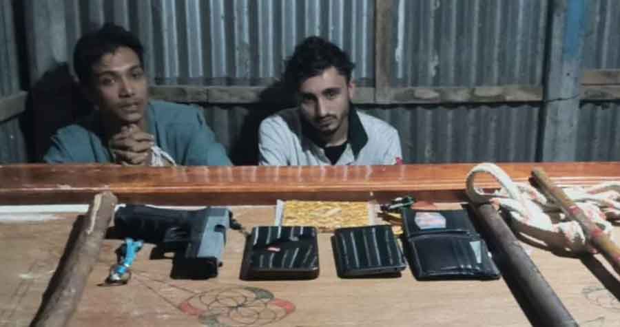 গ্রেপ্তারকৃতরা হলেন, গাজীপুরের জয়দেবপুর উপজেলার নয়নপুর গ্রামের কাঞ্চন মীরের ছেলে মীর মোহাম্মদ শাকিল (২১) ও ভোলা জেলার সদর থানার মোসারফ হোসেনের ছেলে শিহাব মোশারফ সৈকত (২৩)। পুলিশ জানায়, ওই সময় তারা পুলিশ পরিচয়ে বিভিন্ন ব্যবসা প্রতিষ্ঠানে গিয়ে খেলনা পিস্তল ও লোহার পাইপ দেখিয়ে ভুক্তভোগীদের থেকে চাঁদা আদায়ের অপকর্ম করে আসছিল। পুলিশ ও স্থানীয়দের সন্দেহের তালিকায় আসার পর, তারা তাদের আচরণ অনুসারে সন্দেহজনক সন্দেহভাজন হিসেবে তাদের আটক করে।