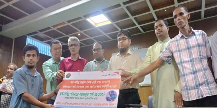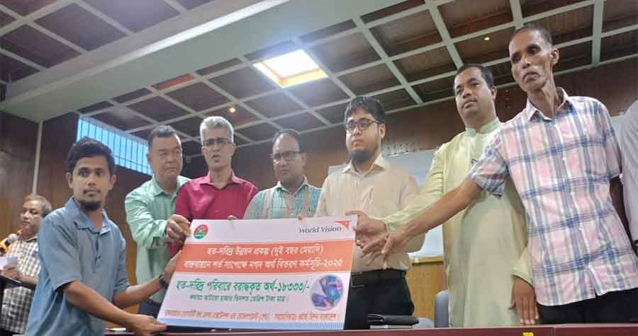 কক্সবাজারের উখিয়ায় সমাজের পিছিয়ে পড়া ও প্রতিবন্ধী পরিবারের স্বাবলম্বী হওয়ার লক্ষ্যে অনুষ্ঠানে শর্তসাপেক্ষ নগদ অর্থ সহায়তা ও শিক্ষাসামগ্রী বিতরণ করা হয়েছে। ওয়ার্ল্ড ভিশন বাংলাদেশ নামে আন্তর্জাতিক উন্নয়ন সংস্থা এই উপকরণ বিতরণের আয়োজন করে। বুধবার (২৪ সেপ্টেম্বর) অনুষ্ঠিত এ অনুষ্ঠানে উপজেলা চারটি ইউনিয়নের মোট ৮৪টি পরিবারের হাতে প্রত্যেককে ১৮ হাজার টাকা নগদ অর্থ তুলে দেওয়া হয়। এই অর্থ পরিবারের আয় বাড়ানোর জন্য ব্যবহার করা হবে, যা দৈনন্দিন খরচের পাশাপাশি ক্ষুদ্র ব্যবসা শুরু বা সম্প্রসারণে সহায়ক হবে। এছাড়া, উপকারভোগী পরিবারের সন্তানদের জন্য একটি করে স্কুল ব্যাগ ও ১০টি খাতা প্রদান করা হয়, যেন শিক্ষাজীবন আরও সহজ হয়। অনুষ্ঠানে উপস্থিত ছিলেন উখিয়া প্রেসক্লাবের আহ্বায়ক সাঈদ মুহাম্মদ আনোয়ার, একাডেমিক সুপারভাইজার বদরুল আলম, ইউপি সদস্য ছৈয়দ হামজা, নুরুল কবির, প্রেসক্লাবের অন্যান্য সদস্য ও উপজেলা সমাজসেবা প্রতিনিধি নজরুল ইসলাম। স্বাগত বক্তব্য দেন কক্সবাজার এসিওর সিনিয়র ম্যানেজার রোনাল্ড প্রবীর চিসিক এবং অনুষ্ঠানের পরিচালনা করেন ওয়ার্ল্ড ভিশনের প্রোগ্রাম ম্যানেজার আবুল কালাম। এলাকাবাসী জানান, এই আর্থিক সহায়তা তাদের জীবনে নতুন আশার সঞ্চার করেছে। বিশেষ করে শিশুদের পড়াশোনা, চিকিৎসা ও ক্ষুদ্র ব্যবসা শুরু করতে এটি গুরুত্বপূর্ণ ভূমিকা রাখবে। বক্তারা বলেন, প্রতিবন্ধী ও পিছিয়ে পড়া মানুষকে স্বাবলম্বী করার পাশাপাশি তাদের শিশুদের শিক্ষায় বিনিয়োগ টেকসই উন্নয়নকে অর্থবহ করে তুলবে।