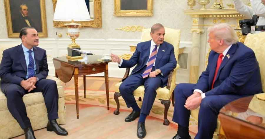 মার্কিন প্রেসিডেন্ট ডোনাল্ড ট্রাম্প ওয়াশিংটনের ওভাল অফিসে পাকিস্তানের প্রধানমন্ত্রী শেহবাজ শরীফ এবং চিফ অব আর্মি স্টাফ ফিল্ড মার্শাল আসিম মুনিরের সঙ্গে গুরুত্বপূর্ণ বৈঠক করেছেন। এই রুদ্ধদ্বার বৈঠকটি স্থানীয় সময় বৃহস্পতিবার (২৫ সেপ্টেম্বর) অনুষ্ঠিত হয়, যেখানে মার্কিন ভাইস প্রেসিডেন্ট জেডি ভ্যান্স এবং পররাষ্ট্রমন্ত্রী মার্কো রুবিও উপস্থিত ছিলেন। পাকিস্তানের প্রধানমন্ত্রীর কার্যালয় থেকে প্রকাশিত এক বিবৃতিতে বলা হয়, এই বৈঠকটি প্রায় এক ঘণ্টা বিশ্লেষিত হয়েছে।