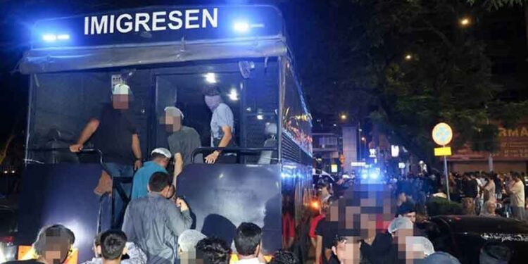 মালয়েশিয়াটির রাজধানী কুয়ালালামপুরে বৃহৎ এক ক্যাম্পেইনের মাধ্যমে বাংলাদেশিসহ মোট ১৯৬ জন বিদেশিকে আটক করা হয়েছে। এই অভিযান শুরু হয় শুক্রবার (২৬ সেপ্টেম্বর) রাতে, যেখানে রাজধানীর চৌ কিট এলাকা অবস্থিত পাকিস্তানি খাবার রেস্তোরাঁ ও এর আশপাশের বিভিন্ন ব্যবসা প্রতিষ্ঠান ঘেরাও করে ইতিবাচক অভিযান চালানো হয়। শনিবার মালয়েশিয়ার সরকারি বারনামা সংবাদ সংস্থার প্রকাশিত প্রতিবেদনে এই তথ্য জানানো হয়েছে।
