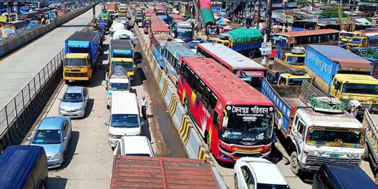 ঢাকা-চট্টগ্রাম মহাসড়কের নারায়ণগঞ্জ অংশে শক্তিশালী যানজটের সৃষ্টি হয়েছে, যা নিয়ে চরম ভোগান্তিতে পড়েছেন যাত্রীরা এবং চালকরা। বুধবার (১ অক্টোবর) সকাল সাড়ে ৯টা থেকে বেলা সাড়ে ১১টার পর্যন্ত এ যানজট অব্যাহত রয়েছে। জানা গেছে, প্রবল বর্ষণের কারণে এবং দড়িকান্দি এলাকায় একটি বড় গাড়ির বিকলের ফলে এই পরিস্থিতি সৃষ্টি হয়েছে। মহাসড়কের চট্টগ্রামমুখী লেনে ব্যাপক যানজটের কারণে অনেক যাত্রী ও চালক দীর্ঘ সময় একই স্থানে দাঁড়িয়ে থাকছেন। কিছু দূরবর্তী যাত্রীরা হাঁটাচলা করে গন্তব্যে যাওয়ার চেষ্টা করছেন।একজন যাত্রী ইয়াছিন আরাফাত বলেন,