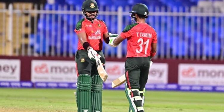তবে শেষ পর্যন্ত বাংলাদেশ দলের লড়াকু মনোভাব ও কঠোর পরিশ্রমের ফলে তারা জয়লাভ করে। শারজার মাঠে আফগানিস্তানের বিরুদ্ধে এই ম্যাচে বাংলাদেশ প্রথমে ব্যাট করে ১৫১ রান করে। ব্যাটিংয়ের সূচনা দুর্দান্ত ছিল। ওপেনার তানজিদ হাসান তামিম ও পারভেজ হোসেন ইমন পাওয়ার প্লেতে ৬ ওভারে বিনা উইকেটে ৫০ রান তুলেন। এই ওপেনিং জুটিতে ১১ ওভারে বাংলাদেশ ১০০ রান পার করে। ইমন ৩৫ বলে ফিফটি করেন, আর তামিমের হাফসেঞ্চুরি ১২তম ওভারে আসে। ইমন ৫৪ রানে ফিরলেও, তার বিস্ময়কর ব্যাটিং অনন্য ছিল।
