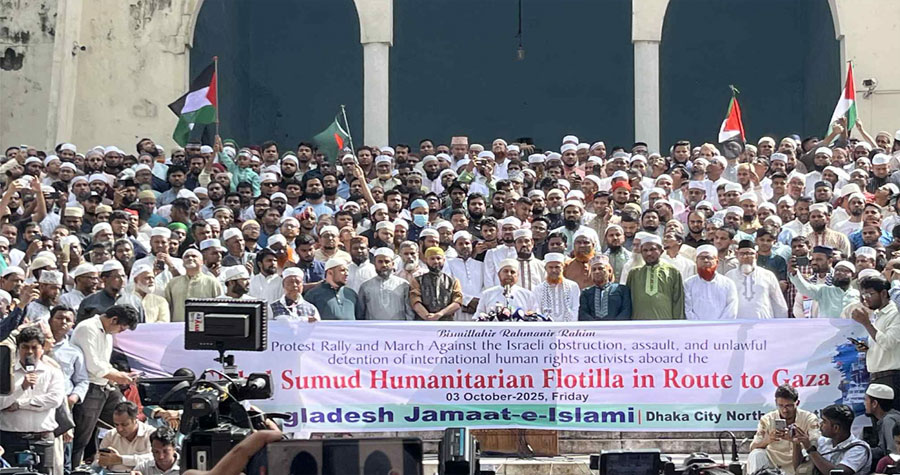 বিক্ষোভ সমাবেশে সভাপতিত্ব করেন ঢাকা মহানগর উত্তরের আমীর মুহাম্মদ সেলিম উদ্দিন, এ ছাড়া কেন্দ্রীয় ও মহানগর নেতাকর্মীরাও এতে অংশ নেন। উল্লেখ্য, সম্প্রতি ফিলিস্তিনের গাজা অঞ্চলে মানবিক সরবরাহের জন্য যাত্রা শুরু করা আন্তর্জাতিক নৌবহর ‘গ্লোবাল সুমুদ ফ্লোটিলাক’ ইসরায়েলি নৌবাহিনী আটক করেছে। এই নৌবহরটি স্পেন থেকে যাত্রা শুরু করে ইতালি ও গ্রিসের আরও নৌযান যোগ হয়। এর মধ্যে ছিল ৪০টির বেশি বেসামরিক নৌযান, যা গাজাবাসীর জন্য খাদ্য, চিকিৎসা সামগ্রী ও অন্যান্য মানবিক সহায়তা বহন করছিল।