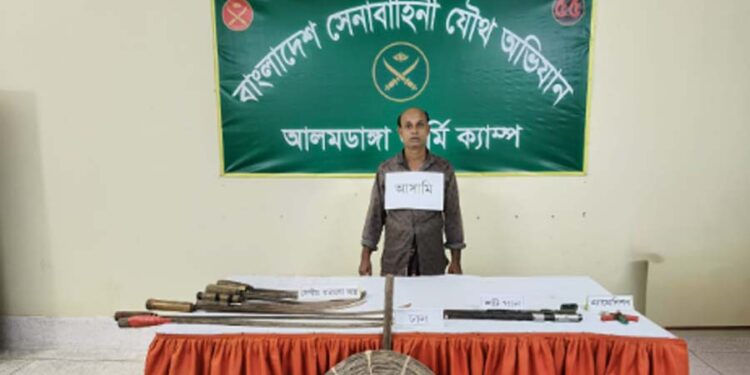 সূত্র জানায়, গোপন সংবাদের ভিত্তিতে এ সময় সেনাবাহিনীর বিএ-১০৯৪৯ ক্যাপ্টেন সৌমিক আহমেদ অয়ন এর নেতৃত্বে সাঁড়াশি অভিযান চালানো হয়। অভিযানে নিহত জসิมের ছেলে সোয়াদ কেশবপুর পূর্বপাড়ার স্থায়ী বাসিন্দা। ঘরের ভিতরে তল্লাশি চালিয়ে একটি শট গান, পাঁচ রাউন্ড গুলি, নয়টি ধারালো দেশীয় অস্ত্র এবং একটি ঢাল উদ্ধার করা হয়।