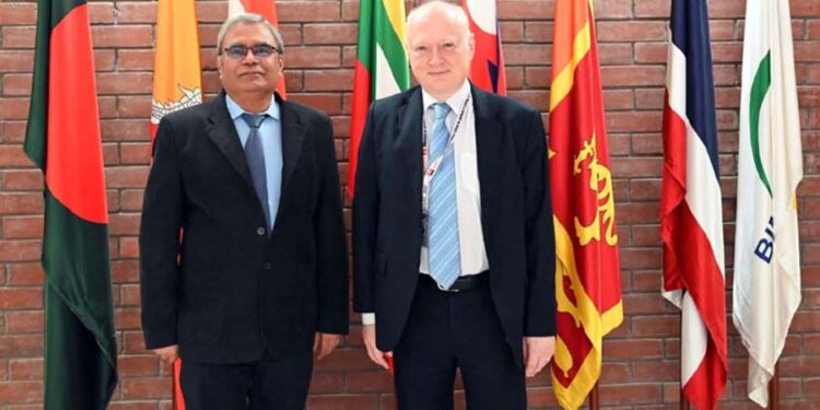 বাংলাদেশে নিযুক্ত জার্মানির রাষ্ট্রদূত ড. রুডিগার লোটজ সোমবার (৮ অক্টোবর) ঢাকায় মুসলমান সভ্যতা বা বিমসটেকের (বঙ্গোপসাগরীয় বহুখাতভিত্তিক প্রযুক্তি ও অর্থনৈতিক সহযোগিতা উদ্যোগ) মহাসচিব ইন্দ্র মনি পাণ্ডের সঙ্গে এক সৌজন্য সাক্ষাৎ করেছেন। এ বৈঠকটি বিমসটেকের কার্যালয়ে অনুষ্ঠিত হয়।
