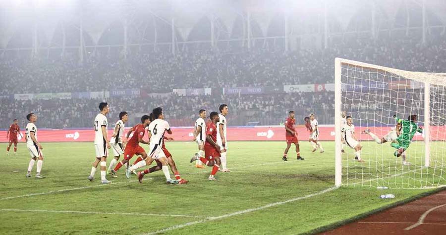আজ নিজেদের মাটিতে দুর্দান্ত প্রত্যাশায় শুরু হয়েছিল ম্যাচ। ম্যাচের প্রথম ১৩ মিনিটে বাঁ প্রান্ত থেকে ফ্রি কিকের সুযোগে গোল করে বাংলাদেশকে এগিয়ে দেন হামজা চৌধুরী। লেস্টার সিটির মিডফিল্ডারের বাঁকানো শটে দর্শকরা উল্লসিত হন।