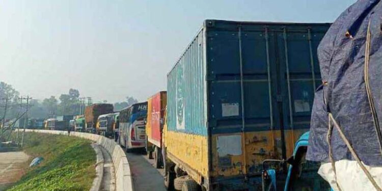 ঢাকা-বগুড়া মহাসড়কের সিরাজগঞ্জের রায়গঞ্জ অংশে ভোর থেকেই ব্যাপক যানজট সৃষ্টি হয়েছে, যা বর্তমানে ৩ কিলোমিটার এলাকাকে কাঁপিয়ে তুলেছে। ফলে পণ্যবাহী ও যাত্রীবাহী গাড়ি দুটোই দীর্ঘ সময়ের জন্য আটকে পড়েছে। শুক্রবার (১৭ অক্টোবর) ভোর থেকে রায়গঞ্জ উপজেলার ভূইয়াগাঁতী আন্ডারপাস থেকে কালিকাপুর পর্যন্ত এই যানজটের সৃষ্টি হয়। এতে ঢাকা ও বগুড়ামুখী দুই লেনের যানবাহনই প্রচুর সময়ের জন্য থেমে গেছে। পুলিশ জানিয়েছে, রায়গঞ্জের রয়হাটি ব্রিজে চলমান নির্মাণকাজের কারণে এক লেন দিয়ে মাত্র একদিকে ট্রাফিক চলাচল করছে। পাশাপাশি ট্রাফিক আইন অমান্য করে চালকদের বিশৃঙ্খল চলাচলের কারণেও এই যানজট সৃষ্টি হয়েছে। সকালে যখন রয়হাটি ব্রিজের পাশে পাথরবোঝাই একটি ট্রাক নষ্ট হয়ে যায়, তখন পরিস্থিতি আরও কঠিন হয়ে উঠে। ট্রাকচালক গফুর আলী বলেন, ভোর থেকে অপেক্ষা করছি, সামনে এগোতে পারছি না, কতক্ষণ এভাবে থাকতে হবে সেটাও জানি না। সিরাজগঞ্জ হাটিকুমরুল হাইওয়ে থানার ওসি ইসমাইল হোসেন বলেন, বর্তমানে যান চলাচল ধীরগতিতে চলছে, আশাকরি আধা ঘণ্টা থেকে এক ঘণ্টার মধ্যে পরিস্থিতি স্বাভাবিক হবে। তিনি আরও জানান, ব্রিজের কাজের কারণে এক লেন দিয়ে দুই দিকের গাড়ি চলায় গতি কমে যাচ্ছে। ভোরে দুই দিকে গাড়ি মুখোমুখি আটকে গেলে পুলিশ ঘটনাস্থলে পৌঁছে যানজট নিরসনের চেষ্টা করে। পরে সকাল সাড়ে সাতটার দিকে ঢাকামুখী একটি ট্রাকের চাকা ভেঙে আবারও জট সৃষ্টি হয়। তবে পুলিশের তৎপরতায় পরিস্থিতি নিয়ন্ত্রণে আনার জন্য কাজ চলছে বলে জানিয়েছেন ওসি। এই পরিস্থিতি মোকাবেলায় প্রশাসন ও ট্রাফিক বিভাগ সক্রিয়ভাবে কাজ করছে।