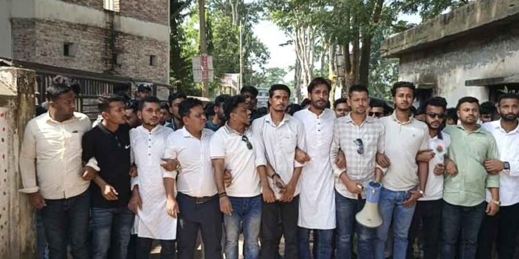 বরিশাল জেলার গৌরনদী উপজেলায় একটি তুচ্ছ ঘটনায় ভিত্তিহীন ও ষড়যন্ত্রমূলক মামলার প্রতিবাদে ছাত্রদলের নেতাকর্মীরা কঠোর विरोध প্রকাশ করে। গৌরনদী মডেল থানায় বরিশাল জেলা, উপজেলা, পৌর ও কলেজ শাখা ছাত্রদলের নেতাকর্মীদের বিরুদ্ধে একটি মিথ্যা মামলা দায়ের করা হয়। এই মামলাটির সত্যতা নেই, এটি উদ্দেশ্যপ্রণোদিত ও উসকানিপূর্ণ, যা গত দিনে ছাত্রদলের কর্মীদের বিরুদ্ধে রাজনৈতিক ও ব্যক্তিগত প্রতিশোধের জন্য আনা হয়েছে। এর বিপরীতে, প্রতিবাদে ও প্রতিরোধে সংগঠনের নেতাকর্মীরা একটি শান্তিপূর্ণ বিক্ষোভ মিছিল ও প্রতিবাদ সমাবেশের আয়োজন করে। ২৭শে অক্টোবর সোমবার সকাল ১১টার দিকে সরকারি গৌরনদী কলেজের কেন্দ্রীয় শহীদ মিনার চত্বর থেকে এই মিছিল শুরু হয়। এটি ঢাকা-বরিশাল মহাসড়ক প্রদক্ষিণ করে আবারও কলেজ গেটের সামনে এসে সংক্ষিপ্ত আলোচনা ও প্রতিবাদ সভায় রূপ নেয়। অনুষ্ঠানে উপস্থিত ছিলেন কলেজ শাখা ছাত্র দলের সাধারণ সম্পাদক মুন্না খান, গৌরনদী উপজেলা ছাত্রদলের সদস্য সচিব আল-আমিন মোল্লা সভাপতিত্বে, পাশাপাশি বক্তব্য দেন উপজেলা ছাত্রদলের যুগ্ম-আহবায়ক তারেক আহসান, কলেজ শাখার সভাপতি তানভীর হাসান তানিম, সহ-সভাপতি আলী আকবর ও রাজীব সরদার, সিনিয়র যুগ্ম সাধারণ সম্পাদক আনোয়ার হোসেন, উপজেলা ছাত্র দলের যুগ্ম-আহবায়ক কামরুল হাসান জয়, আরিফুল ইসলাম সুজন, পৌর ছাত্র দলের যুগ্ম-আহবায়ক আব্দুর রহিমসহ বিভিন্ন অঙ্গ ও সহযোগী সংগঠনের নেতৃবৃন্দ। এই প্রতিবাদমূলক কর্মসূচি শান্তিপূর্ণভাবে সম্পন্ন হয়, যা রাজনীতি ও সামাজিক আন্দোলনের এক গুরুত্বপূর্ণ অংশ।