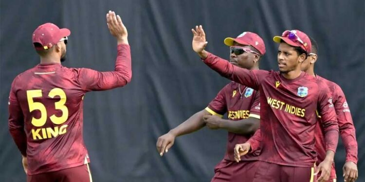 বোলিংয়ে শুরুটা ভালোই করেছিলেন শেখ মেহেদি হাসান এবং শরিফুল ইসলাম। তৃতীয় ওভারে আলিক আথানজেকেকে ফিরিয়ে প্রথম ব্রেকথ্রু দেন মেহেদি। পরবর্তীতে ব্রেন্ডন কিংকে দ্রুত ফেরান নাসুম আহমেদ। কিং ৭ বলে ৮ রান করেন।