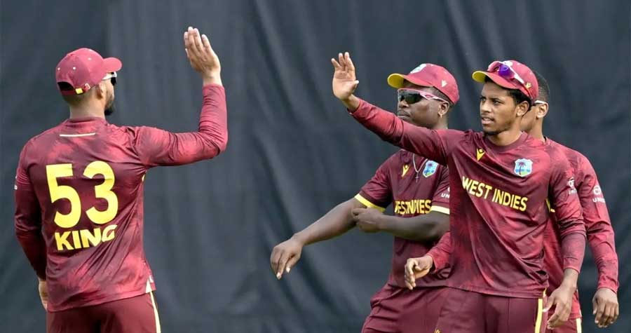 বোলিংয়ে শুরুটা ভালোই করেছিলেন শেখ মেহেদি হাসান এবং শরিফুল ইসলাম। তৃতীয় ওভারে আলিক আথানজেকেকে ফিরিয়ে প্রথম ব্রেকথ্রু দেন মেহেদি। পরবর্তীতে ব্রেন্ডন কিংকে দ্রুত ফেরান নাসুম আহমেদ। কিং ৭ বলে ৮ রান করেন।