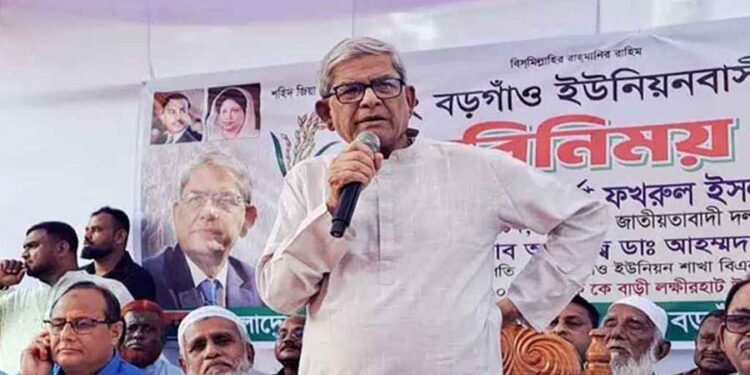ফখরুল বলেন, একদল মানুষ বাড়ি বাড়ি গিয়ে নারীদের ধর্মের অপব্যাখ্যা করছে, যা মূলত মুনাফেকি অভিনয়। এভাবে নিজস্ব অস্তিত্ব রক্ষার নামে জামায়াত অযৌক্তিক কর্মসূচি দিচ্ছে, যা দেশের জন্য হুমকি। তিনি স্পষ্ট করে বলেন, নির্বাচন পেছানোর কোনো সুযোগ নেই। যদি এবার নির্বাচন দেরি হয়, তাহলে বাংলাদেশ এক অনির্বাচিত, ব্যর্থ রাষ্ট্রে পরিণত হবে।