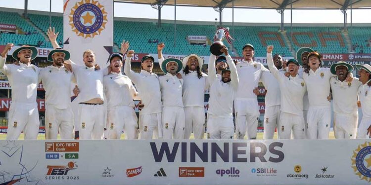 সিরিজের শেষ দিন ভারতের জন্য ছিল কঠিন চ্যালেঞ্জ। ৫৪৯ রানের লক্ষ্য নিয়ে তারা ব্যাট করছিল। প্রথম কয়েক ঘণ্টায় আস্থা রেখে ড্র করার ভাবনা ছিল, তবে দিন শুরুতেই তারা বিপদে পড়ে যায়। খেলা শুরু হয় যখন ভারত ২ উইকেটে ২৭ রান করে, তখনই হয়ে যায় জোড়া ধাক্কা। সিমন হারমার প্রথম সেশনের মাঝামাঝি সময়ে কুলদীপ যাদব ও ধ্রুব জুরেলকে দ্রুত আউট করেন। এরপর ভারপ্রাপ্ত অধিনায়ক ঋশাভ পান্তকেও মাঠ ছাড়া হয়। ভারত ৫৮ রানে ৫ উইকেট হারায়, এমন পরিস্থিতিতে তারা কোণঠাসা হয়ে পড়ে। তবে সাই সুদর্শন ও রবীন্দ্র জাদেজার কঠোর প্রতিরোধ ভারতকে আবার ঘুরে দাঁড়ানোর আশা দেখায়। সুদর্শন ১৩৮ বলে ১৪ রানে অপরাজিত থাকেন, আর জাদেজা ৪০ বলে ২৩ রান নিয়ে টিকে থাকেন। চা-বিরতিতে ফিরে দ্বিতীয় সেশনে, দক্ষিণ আফ্রিকার পঞ্চম বলেই বড় বিপর্যয় ঘটে। সেনুরান মুথুসারামির বলে সুদর্শন ক্যাচ দিয়ে ফিরে যান। ১৩৯ বলে ১৪ রানে তিনি আউট হন। এরপর জাদেজার সঙ্গে ৯৯ বলের জুটি গড়ে ৩৭ রান যোগ করেন। এরপর ওয়াশিংটন সুন্দর ও জাদেজা ম্যাচ বাঁচানোর জন্য লড়ছিলেন। ওয়াশিংটন ৭৭ বলে ৩৫ রান করে মারক্রামের বলে ক্যাচ দিয়ে ফিরে যান, আর তার ক্যাচ নিয়ে বিশ্ব রেকর্ড গড়েন দক্ষিণ আফ্রিকার ফিল্ডার। মারক্রাম এক টেস্টে সর্বোচ্চ ৯ ক্যাচ নিয়ে ইতিহাসে নাম লেখান, যা আগে ছিল আজিঙ্কা রাহানের ২০১৫ সালের রেকর্ড। ওই ক্যাচে মারক্রাম একজন দ্বাদশ খেলোয়াড়ের মতো প্রমাণ দেন। এরপর, পরের ওভারেই নিতিশ রেড্ডি কামিয়ে ফেলেন। জাদেজা ও সিরাজের জোড়া শিকার নিয়ে দলটি শেষ হয়। সিরাজ ৫৪ রানে ২ উইকেট নিয়েছেন, হারমার ২৩ ওভার বল করে ৩৭ রান দিয়ে ছয় উইকেট। এই সিরিজে তিনি সর্বোচ্চ ১৭ উইকেট সংগ্রহ করেন এবং ম্যাচের সেরা খেলোয়াড় হন। অন্যদিকে, জানসেন ব্যাট ও বল—দুই বিভাগেই অসাধারণ পারফরমেন্স করেন। প্রথম ইনিংসে ৯৩ রান করেন এবং ভারতের প্রথম ইনিংসের মধ্যে ৬ উইকেট শিকার করেন। মোট দুই ইনিংসে ছয় উইকেট নিয়ে সিরিজের সেরা খেলোয়াড়ের মর্যাদা অর্জন করেন। এই ঐতিহাসিক জয়ের ফলস্বরূপ, দক্ষিণ আফ্রিকা শুধু সিরিজটি জেতেনি, নতুন এক ইতিহাস সৃষ্টি করেছে।