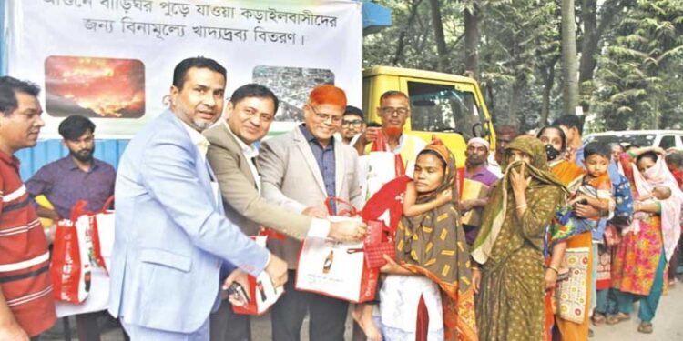 রাজধানীর কড়াইল বস্তিতে গত ২৫ নভেম্বর ঘটে ভয়াবহ আ火নিকাণ্ডে বহু পরিবার তাদের সব কিছু হারিয়েছে। অগ্নিকাণ্ডের ফলে উলোচ্ছ্বাসে পুড়ে গেছে অনেক ঘরবাড়ি, যার ফলে নিঃস্ব হয়ে পড়েছেন ওই এলাকার বাসিন্দারা। অসহায় এই পরিবারগুলোর জন্য খাদ্য ও essentials সরবরাহের জন্য এগিয়ে এসেছে দেশের অন্যতম বৃহৎ শিল্পগোষ্ঠী, দেশবন্ধু গ্রুপ।