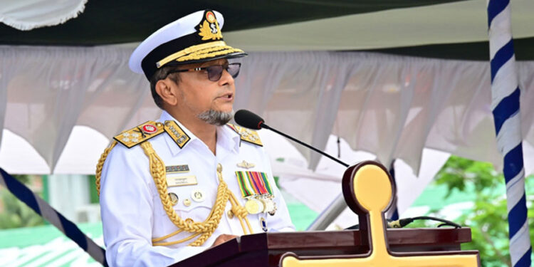 নৌবাহিনী প্রধান অ্যাডমিরাল এম নাজমুল হাসান জানিয়েছেন, অবাধ ও সুষ্ঠু নির্বাচনের দায়িত্ব পালনের জন্য দেশের ৫ হাজার নৌ সদস্য প্রস্তুত রাখা হয়েছে। রোববার (৭ ডিসেম্বর) দুপুরে চট্টগ্রামের নেভাল অ্যাকাডেমিতে অনুষ্ঠিত রাষ্ট্রপতি কুচকাওয়াজের অনুষ্ঠানে তিনি এ কথা বলেন। অনুষ্ঠানের প্রধান অতিথির বক্তব্যে নৌবাহিনী প্রধান বলেন, বঙ্গোপসাগরে সমুদ্র সম্পদ আহরণের জন্য, ব্লু ইকোনমি প্রতিষ্ঠায় এবং দেশের জলসীমায় দেশের ও বিদেশি জাহাজ ও গুরুত্বপূর্ণ স্থাপনা নিরাপত্তায় নৌবাহিনী গুরুত্বপূর্ণ ভূমিকা পালন করছে। তিনি আরও বলেন, দেশের সার্বভৌমত্ব রক্ষা ও দুর্যোগ মোকাবিলায় সেনা, নৌ ও বিমানবাহিনীর সদস্যরা কাঁধে কাঁধ মিলিয়ে কাজ করছে। বিশেষ করে আসন্ন জাতীয় নির্বাচনের জন্য ৫ হাজার নৌ সদস্যকে প্রস্তুত রাখা হয়েছে, যাতে নির্বাচন অবাধ, সুষ্ঠু ও শান্তিপূর্ণভাবে সম্পন্ন হয়। পরে, মিডশিপম্যান ২০২৩ ব্যাচের ৩১ জন শিষ্য, সহ দুইজন নারী, তিন বছরের প্রশিক্ষণ শেষে সাব-লেফটেন্যান্ট পদে কমিশন লাভ করেন। এই বিশেষ অনুষ্ঠানে বিভিন্ন বিষয়ে কৃতী প্রশিক্ষণার্থী ও নবীন কর্মকর্তাদের হাতে পুরস্কার ও পদক তুলে দেওয়া হয়। অনুষ্ঠানে উপস্থিত ছিলেন সেনা, নৌ ও বিমানবাহিনীর উচ্চপদস্থ কর্মকর্তারা, সরকারি ব্যক্তিরা ও নবীন কর্মকর্তাদের অভিভাবকরা।