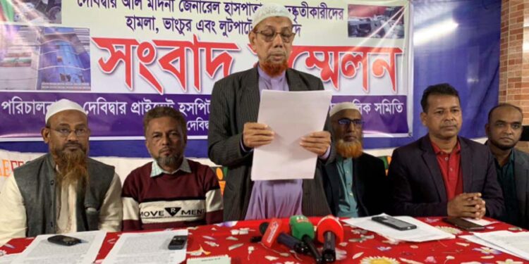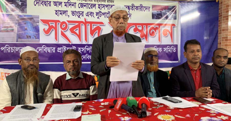 সোমবার (৮ ডিসেম্বর) বিকেলে দেবীদ্বার মা-মনি হাসপাতালে আয়োজিত এক সংবাদ সম্মেলনে এসব অভিযোগ তুলে ধরেন হাসপাতালের কো-চেয়ারম্যান মো. সুলতান আহাম্মদ মুন্সী। এ সময় লিখিত বক্তব্য পাঠ করেন, সেখানে উপস্থিত ছিলেন দেবীদ্বার প্রাইভেট হাসপাতাল ও ডায়াগনস্টিক মালিক সমিতির সভাপতি মো. তাজুল ইসলামসহ বিভিন্ন হাসপাতালের পরিচালক ও প্রতিনিধিরা।