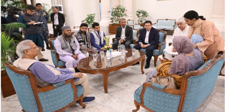 শনিবার (১৩ ডিসেম্বর) সকালে রাষ্ট্রীয় অতিথি ভবন যমুনায় প্রধান উপদেষ্টা ড. মুহাম্মদ ইউনূস হাদির পরিবারের সদস্যদের সঙ্গে সাক্ষাৎ করেন। এই বৈঠকে ইনকিলাব মঞ্চের মুখপাত্র ও ঢাকা-৮ আসনের সম্ভাব্য স্বতন্ত্র প্রার্থীর ভাই, তদ্ব্যতীত হাদির বোন এবং তিন নেতাসহ পরিবারের অন্যান্য সদস্যরা উপস্থিত ছিলেন। প্রেস উইং এ তথ্য জানিয়ে বলেছে, প্রধান উপদেষ্টা নিশ্চিত করেছেন যে, হাদির সর্বোত্তম চিকিৎসার জন্য সব ধরনের স্থানীয় ও আন্তর্জাতিক ব্যবস্থা গ্রহণের নির্দেশ দেওয়া হয়েছে। সবাই তার সুস্থতার জন্য দোয়া করছে এবং প্রয়োজন অনুসারে দেশের বাইরে পাঠানোর কথাও বিবেচনা করা হচ্ছে। হাদির বোন বলেন, ছোটবেলা থেকেই সে দেশপ্রেমে ভরপুর ও বিপ্লবী মনোভাবের মানুষ। বিদ্রোহী কবিতা তার প্রিয় শৈশব থেকে, তিনি সেই কবিতা আবৃত্তি করতে ভালোবাসতেন। বর্তমানে তার একটি ১০ মাসের শিশু সন্তান রয়েছে। তিনি আরও বলেন, হাদি আমাদের পরিবারের শক্তির উৎস। তিনি হেমন্তে ভরা দেশের জন্য আজীবন কাজ করে গেছেন এবং তার বেঁচে থাকাটা একান্তই গুরুত্বপূর্ণ। তারা আশঙ্কা প্রকাশ করে, যদি বর্তমানে দেশের বাইরে চিকিৎসার প্রয়োজন হয়, সরকার তা সম্পন্ন করবে। হাদির পরিবারের একজন সদস্য বলেন, ‘ওর অনেক কাজ রয়েছে। ওকে বাঁচিয়ে রাখতে হবে। প্রধানমন্ত্রী ও সরকারের প্রতি আস্থা রেখেছি, তারা অবশ্যই দেশের জন্য এই বিপদে পাশে থাকবে।’ অপরাধীদের দ্রুত গ্রেপ্তার দাবিতে ইনকিলাব মঞ্চের নেতা আব্দুল্লাহ আল জাবের বলেন, ৫ আগস্টের পর থেকে কিছু দুর্বৃত্ত ওসমান হাদিকে নিখোঁজ করে রেখেছিল। তিনি জুলাই বিপ্লবের একজন নিবেদিত কর্মী ছিলেন এবং সেই লড়াইয়ে অংশ নিতেন। যেখানে হামলার মূল অভিযুক্তের গুলির ঘটনা ঘটেছে, সেই সংক্রান্ত তদন্তে সাতত্রা রয়েছে। তিনি আরও বলেন, ‘জামিন কিংবা অভিযোগের প্রক্রিয়া সম্পর্কে তদন্ত প্রয়োজন। এই জুলাই বিপ্লবের জন্য যারা কাজ করছে, তাদের দ্রুত গ্রেপ্তার ও বিচারের দাবি জানাই।’ অন্যান্য বক্তারা দাবি জানান, সরকারের কাছে নিরাপত্তা নিশ্চিতের জন্য কার্যকর ব্যবস্থা নেওয়ার আহ্বান জানানো হয়। প্রধান উপদেষ্টা বলেছিলেন, এই নৃশংস হামলার সঙ্গে জড়িত সকল চক্রকে চিহ্নিত করে দৃষ্টান্তমূলক শাস্তি দেওয়ার জন্য আইনশৃঙ্খলা বাহিনী তৎপর। ইতোমধ্যে তদন্তের নির্দেশ দেওয়া হয়েছে। এ সময় উপস্থিত ছিলেন আইন উপদেষ্টা ড. আসিফ নজরুল, পরিবেশ ও জলবায়ু উপদেষ্টা রিজওয়ানা হাসান, শিল্প উপদেষ্টা আদিলুর রহমান খান এবং জাতীয় নিরাপত্তা উপদেষ্টা খলিলুর রহমান। উল্লেখ্য, ঢাকা-৮ আসনের স্বতন্ত্র প্রার্থী ও ইনকিলাব মঞ্চের মুখপাত্র শরিফ ওসমান হাদি নির্বাচনী প্রচারণাকালে শুক্রবার (১২ ডিসেম্বর) রাজধানীতে গুলিবিদ্ধ হন। এ ঘটনা দ্রুতই তাকে 
