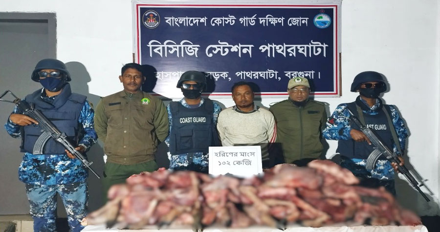 বর্ণনা করেন, স্থানীয় গোপন সংবাদের ভিত্তিতে মধ্যরাতের দিকে, বিশেষ এক অভিযানে কোস্ট গার্ডের সদস্যরা বরগুনার পাথরঘাটার কাঠালতলী গ্রামে পৌঁছায়। সেখানে তারা এক শিকারিকে ১০২ কেজি হরিণের মাংসসহ আটক করে। পরে এই হরিণের মাংস ও আটক ব্যক্তিকে বন বিভাগের কাছে হস্তান্তর করা হয়, যেন আইনানুগ ব্যবস্থা নেয়া হয়।
