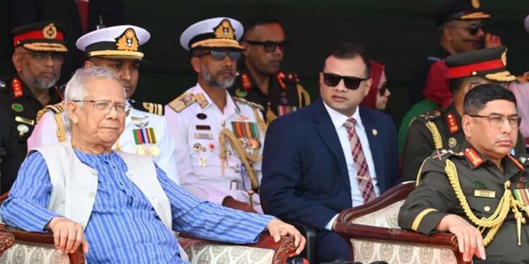 বিজয় দিবসের মহান চেতনা ও ঐতিহাসিক স্মৃতি উদযাপন উপলক্ষে সশস্ত্র বাহিনী পরিচালিত এক অনুষ্ঠানে উপস্থিত ছিলেন প্রধান উপদেষ্টা অধ্যাপক ড. মুহাম্মদ ইউনূস। এটি আয়োজন করা হয় মঙ্গলবার ১৬ ডিসেম্বর, মহান বিজয় দিবসের দিন, রাজধানীর তেজগাঁওয়ে জাতীয় প্যারেড স্কয়ারে। দেশের অন্যতম গুরুত্বপূর্ণ এই অনুষ্ঠানে প্রধান উপদেষ্টা ছাড়াও বহু বিশিষ্ট ব্যক্তিবর্গ উপস্থিত ছিলেন।