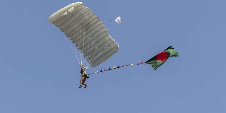 সোমবার, ১৬ ডিসেম্বর, রাজধানীর তেজগাঁও পুরোনো বিমানবন্দরের সংলগ্ন প্যারেড গ্রাউন্ডে সশস্ত্র বাহিনীর উদ্যোগে এই বিশেষ আয়োজনের আয়োজন করা হয়। এই অনুষ্ঠানে অংশ নিয়েছিলেন ‘টিম বাংলাদেশ’ এর ৫৪ জন প্যারাট্রুপার, যারা স্বাধীনতার ৫৪ বছর পূর্তি স্মরণে আকাশ থেকে পতাকা হাতে অবতরণ করেন।