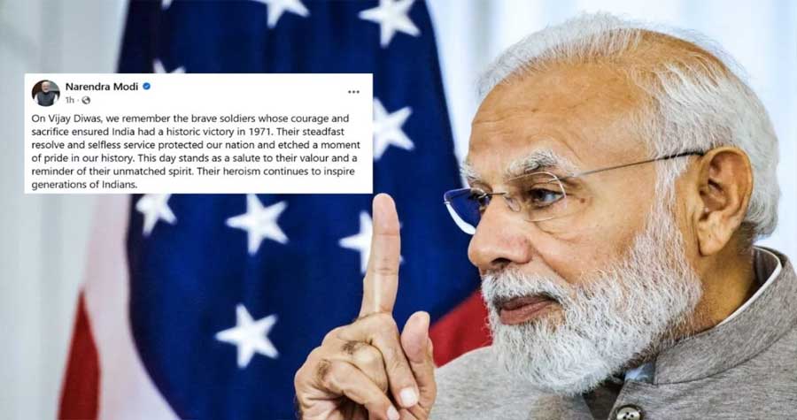 তবে এই বছরে বিজয় দিবসের উপলক্ষে ভারতের প্রধানমন্ত্রী নরেন্দ্র মোদি ১৬ ডিসেম্বরের শুভেচ্ছা জানাতে গিয়ে এক বিশেষ পোস্ট করেন। সেখানে তিনি ১৯৭১ সালের সেই ঐতিহাসিক দিনে ভারতের বিজয়কে উল্লেখ করেছেন, কিন্তু অসম্ভবভাবে একবারও বাংলাদেশের নাম উল্লেখ করেননি। মোদির পোস্টে তিনি লিখেছেন, “বিজয় দিবসে, আমরা আমাদের সাহসী সেনাদের স্মরণ করছি, যাদের সাহসিকতা এবং আত্মত্যাগ ১৯৭১ সালে ভারতের জন্য একটি ঐতিহাসিক বিজয় নিশ্চিত করেছিল। তাদের দৃঢ় মনোবল এবং নিস্বার্থ সেবা আমাদের দেশকে রক্ষা করেছে এবং আমাদের ইতিহাসে গৌরবময় মুহূর্ত খোদাই করেছে। এই দিনটি তাদের সাহসকে সম্মান জানাতে এবং তাদের অসাধারণ মনোবলকে স্মরণে রাখতে আমাদের অনুপ্রাণিত করে। তাদের বীরত্বের গল্প আমাদের ভবিষ্যৎ প্রজন্মকে অনুপ্রেরণা জোগায়।”