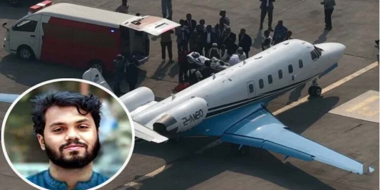 সোমবার (১৫ ডিসেম্বর) বাংলাদেশ সময় বিকেল ৫টা ৫০ মিনিটে হাদিকে বহনকারী এয়ার অ্যাম্বুলেন্সটি সিঙ্গাপুরের সেলেতার বিমানবন্দরে নিরাপদে অবতরণ করেছে। এর আগে, দুপুর ১টা ৫৫ মিনিটে এয়ার অ্যাম্বুলেন্সটি হযরত শাহজালাল আন্তর্জাতিক বিমানবন্দর থেকে রওনা দেয়। এর আগের পদক্ষেপে, দুপুর ১টা ১০ মিনিটে এয়ার অ্যাম্বুলেন্সটি ঢাকার এভারকেয়ার হাসপাতাল থেকে যাত্রা শুরু করে। বিমানবন্দরের ৮ নম্বর গেট দিয়ে প্রবেশের পর, বিকেল সাড়ে ৩টার দিকে ওসমান হাদিকে বহনকারী অ্যাম্বুলেন্স থেকে তাকে সরিয়ে এয়ার অ্যাম্বুলেন্সে নেওয়া হয়। উল্লেখ্য, এয়ার অ্যাম্বুলেন্সটি সকাল ১১টা ২২ মিনিটে সিঙ্গাপুর থেকে ঢাকা এসে পৌঁছায়। হাদির সাথে সিঙ্গাপুরে গিয়ে যোগ দেন তার ভাই ওমর বিন হাদি ও বন্ধু আমিনুল হাসান ফয়সাল, যিনি হাদির রাজনৈতিক সহযোগী। আসন্ন কার্যক্রমের অংশ হিসেবে, সিঙ্গাপুরে পৌঁছানোর পরে ওসমান হাদিকে সিঙ্গাপুর জেনারেল হাসপাতালে স্থানান্তর করা হবে। ঢাকার এয়ারকেয়ার হাসপাতাল ও সিঙ্গাপুরের হাসপাতালের চিকিৎসকরা তার শারীরিক অবস্থার বিবেচনায় এ সিদ্ধান্তে সায় দিয়েছেন। উল্লেখ্য, গত শুক্রবার (১২ ডিসেম্বর) সকালে গুলিবিদ্ধ হয়ে ঢাকা মেডিকেল কলেজ (ঢামেক) হাসপাতালে আনার পর, হাদিকে এর পরে এভারকেয়ার হাসপাতালে ভর্তি করা হয়। তখন থেকেই তিনি চিকিৎসাধীন ছিলেন। রবিবার (১৪ ডিসেম্বর) নানা আলোচনার মাধ্যমে প্রধান উপদেষ্টা অধ্যাপক ড. মুহাম্মদ ইউনূসের নির্দেশে, সংস্কৃতি উপদেষ্টা মোস্তফা সরয়ার ফারুকী, স্বাস্থ্য মন্ত্রণালয়ের বিশেষ সহকারী অধ্যাপক ডা. সায়েদুর রহমান, এভারকেয়ার হাসপাতালের ডাক্তারা ও হাদির পরিবারের অন্য সদস্যরা এক জরুরি বৈঠকে সিদ্ধান্ত নেয়েন যে, দ্রুত সিঙ্গাপুরে তার চিকিৎসার ব্যবস্থা করা হবে। এ বিষয়ে গত দুদিন ধরে সরকারের বিভিন্ন হাসপাতালে যোগাযোগ ও আলোচনা চলেছে। এখন পর্যন্ত, ওসমান হাদির শারীরিক অবস্থা অপরিবর্তিত থাকলেও, চিকিৎসকরা তার দ্রুত সুস্থতার জন্য প্রার্থনা করেছেন। সূত্র: ফ্লাইটরাডার২৪