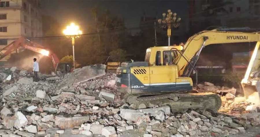রাত সাড়ে ১১টার দিকে সাহেব বাজার জিরো পয়েন্টে জড়ো হন বিক্ষোভকারীরা, যারা হাদির হত্যার বিচারের দাবিতে স্লোগান দিতে থাকেন। পরে তারা নগর আওয়ামী লীগ কার্যালয়ের সামনে অবস্থান নেন। বিভিন্ন স্কুলের শিক্ষার্থী ও ছাত্র সংগঠনের নেতারা ‘আধিপত্যবাদ বিরোধী শিক্ষার্থী’ ব্যানারে আন্দোলনে যোগ দেন। পরিস্থিতি উত্তপ্ত হয়ে উঠলে, এক পর্যায়ে, ব্যাপক ভাঙচুর চালানো হয় বুলডোজার দিয়ে মহানগর আওয়ামী লীগ কার্যালয়ে। এই ঘটনার ফলে পুরো এলাকায় আতঙ্ক ছড়িয়ে পড়ে এবং দীর্ঘ সময় ধরে পরিস্থিতি থমথমে থাকে।