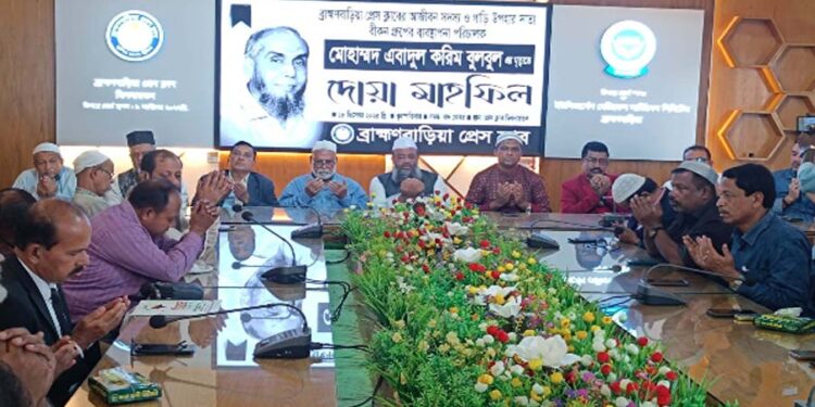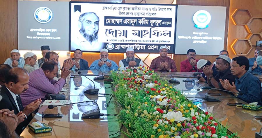 বিশিষ্ট শিল্পপতি, সাবেক সংসদ সদস্য, ব্রাহ্মণবাড়িয়া প্রেসক্লাবের আজীবন সদস্য ও প্রেসক্লাবের গাড়ি উপহারদাতা, বীকন গ্রুপের ব্যবস্থাপনা পরিচালক মোহাম্মদ এবাদুল করিম বুলবুল ব্যক্তিগত জীবন ও কর্মে ব্রাহ্মণবাড়িয়া ও দেশের বিভিন্ন ক্ষেত্রে গুরুত্বপূর্ণ অবদান রেখে গেছেন। তার স্মরণে গত বৃহস্পতিবার (১৮ ডিসেম্বর) দুপুরে ব্রাহ্মণবাড়িয়া প্রেসক্লাবের উদ্যোগে এক দোয়া মাহফিল অনুষ্ঠিত হয়। এতে উপস্থিত ছিলেন স্থানীয় সাংবাদিক ও বিভিন্ন ব্যক্তি, যারা তার প্রতি গভীর শ্রদ্ধা জানাতে এসেছেন। অনুষ্ঠানটি প্রেসক্লাবের মিলনায়তনে অনুষ্ঠিত হয় এবং খতিব মাওলানা সিবগাতুল্লাহ নূর দোয়া পরিচালনা করেন।