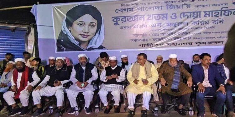 গাজীপুরে খালেদা জিয়ার দ্রুত আরোগ্য ও সুস্থতার জন্য বিশেষ দোয়া ও কুরআন খতম