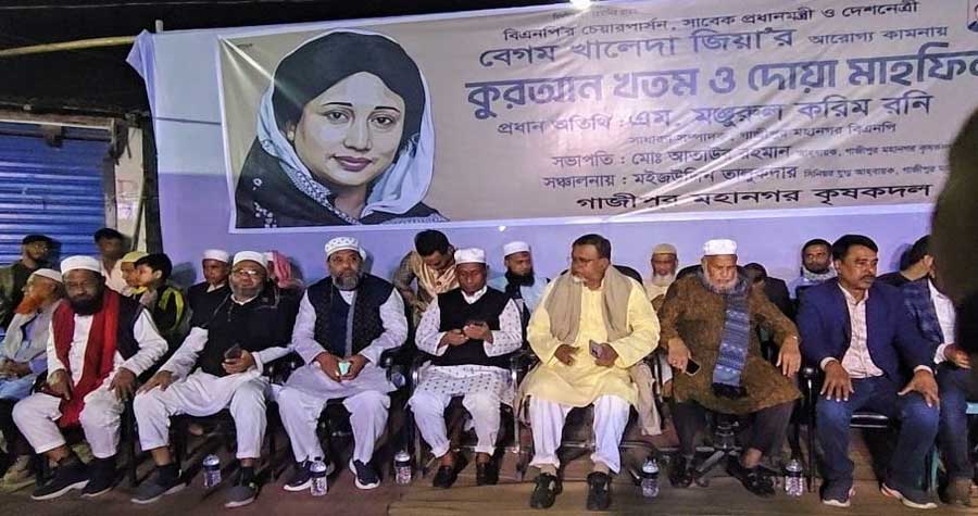 গাজীপুরে খালেদা জিয়ার দ্রুত আরোগ্য ও সুস্থতার জন্য বিশেষ দোয়া ও কুরআন খতম