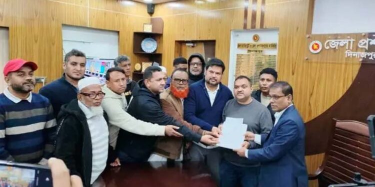 আগামী ত্রয়োদশ জাতীয় সংসদ নির্বাচনের জন্য দিনাজপুর-৩ সদর আসনে বিএনপির চেয়ারপার্সন খালেদা জিয়ার পক্ষে মনোনয়ন ফরম সংগ্রহ করেছেন বিএনপি নেতারা। এই উদ্যোগের নেতৃত্ব দেন জেলা বিএনপির সাধারণ সম্পাদক বখতিয়ার আহম্মেদ কচি। বুধবার (২৪ ডিসেম্বর) দুপুরে তিনি জেলা রিটার্নিং কর্মকর্তা ও জেলা প্রশাসক মো. রফিকুল ইসলামের কাছে গিয়ে মনোনয়ন ফরম সংগ্রহ করেন। জেলা নির্বাচন কর্মকর্তা মো. জিলহাজ উদ্দিন এ তথ্য নিশ্চিত করে বলছেন, খালেদা জিয়ার পক্ষ থেকে তার নামের জন্য এই মনোনয়ন ফরম নেওয়া হয়েছে। প্রতিনিধি হিসেবে এই ফরম সংগ্রহ করেন জেলা বিএনপির সাধারণ সম্পাদক বখতিয়ার আহম্মেদ কচি। জানা গেছে, খালেদা জিয়া দিনাজপুর-৩ সদর আসনসহ মোট তিনটি আসন থেকে নির্বাচনে প্রতিদ্বন্দ্বিতা করবেন। তিনি সম্প্রতি এই আসন থেকে নির্বাচনের জন্য মনোনয়ন ফরম সংগ্রহের জন্য পৌঁছান। এটি তাঁর প্রথমবার দিনাজপুর থেকে নির্বাচন করার অভিজ্ঞতা। তার এই নির্বাচনের ব্যাপারে সাধারণ সম্পাদক বখতিয়ার আহম্মেদ কচি বলেন, খালেদা জিয়া দিনাজপুরের মেয়ে হলেও কখনোই এখান থেকে নির্বাচন করেননি। তিনি আরও বলেন, যতগুলো নির্বাচন করেছেন সব ক্ষেত্রে তিনি জয়লাভ করেছেন। এই নির্বাচনে মনে করেন, দিনাজপুর-৩ এর ভোটাররা তাকে বিপুল ভোটে নির্বাচিত করবেন। তিনি বিশ্বাস করেন, রেকর্ড সংখ্যক ভোট নিয়ে তিনি জয়ী হবেন। আজকালের খবর/বিএস