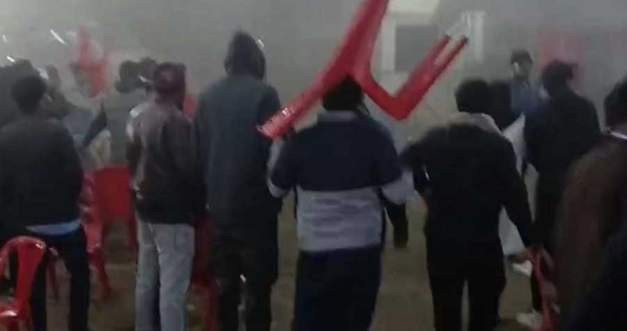 এরপর রাত ১০টার দিকে আয়োজক কমিটির প্রধান ডা. মুস্তাফিজুর রহমান শামীম ঘোষণা দেন, পরিস্থিতির অবনতি ও জেলা প্রশাসকের নির্দেশে অনুষ্ঠান বাতিল করা হয়েছে।