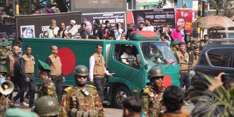 বিএনপির সাবেক প্রধানমন্ত্রী ও দলের চেয়ারপারসন খালেদা জিয়ার জানাজা সম্পন্ন হয়েছে। এরপর তার মরদেহ দাফনের জন্য প্রস্তুতি নেওয়া হচ্ছে। আজ বুধবার (৩১ ডিসেম্বর) বিকেল ৩টার পর মানিক মিয়া এভিনিউয়ে তার জানাজা অনুষ্ঠিত হয়। জানাজায় উপস্থিত ছিলেন অসংখ্য মানুষ, তার উপস্থিতিতে চারদিক জনস্রোতের মতো পরিণত হয়। ২০৩০ সালে জাতীয় মসজিদ বায়তুল মোকাররমের খতিব মুফতি মোহাম্মদ আবদুল মালেক মুসল্লিদের মধ্যে জানাজা পড়ান। জানাজার আগে, খালেদা জিয়ার ছেলে ও বিএনপির ভারপ্রাপ্ত চেয়ারম্যান তারেক রহমান দেশবাসীর কাছে দোয়া চেয়েছেন। তিনি বলেন, ‘আমার মা যদি কারো কাছ থেকে কোনো ঋণ নিয়ে থাকেন, তবে তিনি যোগাযোগ করুন, আমি সেটি পরিশোধের ব্যবস্থা করব।’ তারেক রহমান আরও বলেন, ‘খালেদা জিয়া কখনো কারো বিরুদ্ধে কোনো অন্যায় করেছেন, সেই সব ঘটনার জন্য তিনি ক্ষমা চেয়েছেন এবং সকলের কাছে দোয়া চেয়েছেন।’ জানাজায় অংশ নেন বিএনপির প্রধান উপদেষ্টা অধ্যাপক ড. মুহাম্মদ ইউনূস, জামায়াতে ইসলামীর আমির ডা. শফিকুর রহমান, জাতীয় নাগরিক পার্টির আহ্বায়ক নাহিদ ইসলামসহ বিভিন্ন রাজনৈতিক ও সামাজিক ব্যক্তিত্ব। জানাজা শেষে মরদেহ দাফনের প্রস্তুতি নেওয়া হচ্ছে।