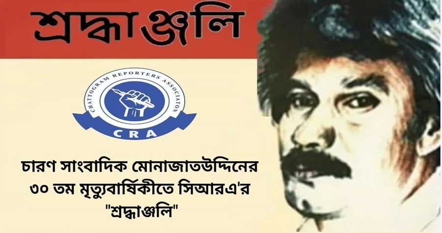 আজ ৩০ বছর পরেও স্মরণে আঠুরে এই দিনটিতে চট্টগ্রাম রিপোর্টার্স অ্যাসোসিয়েশনের পক্ষ থেকে গভীর শ্রদ্ধা জানানো হয় চারণ সাংবাদিক মোনাজাতউদ্দিনের প্রতি। তার অবদান আমাদের সাংবাদিকতা জগতের জন্য এক অনন্ত অনুপ্রেরণা। সংগঠনের প্রতিষ্ঠাতা সভাপতি সোহাগ আরেফিন বলেন, দেশের মিডিয়া নেতৃবৃন্দ এবং নগরীর সাংবাদিকরা প্রায়ই ‘মফস্বল সাংবাদিকতা’ শব্দের সামনে তুচ্ছতা দেখেন বা তা নিয়ে তাচ্ছিল্য করেন। সেই অবজ্ঞার মাঝেও, মতভেদ থাকলেও মফস্বল সাংবাদিকতা ও সাংবাদিকতার প্রতি যে লেগে থাকা, প্রেম এবং শ্রদ্ধা ছিল, তা আমাদের সকলের জন্য অবশ্যই গর্বের। তিনি আরো বলেন, মূলত এই ভুল ধারণাটা ভেঙে দিয়েছিলেন মোনাজাতউদ্দিন, একজন মফস্বল সাংবাদিক হিসেবে। আমাদের দেশের সাংবাদিকতা জগতে তিনি ছিলেন এক অনন্য ব্যক্তিত্ব, যিনি বিস্তারিত অনুসন্ধানে, সত্যের সন্ধানে, সাধারণ মানুষের কথা তুলে ধরতেন নিরলসভাবে। জীবনের অর্ধশত বছর ধরে বাংলাদেশের বিভিন্ন প্রান্তে ছুটে বেড়িয়েছেন, তুলে এনেছেন গ্রামের চিত্র, মানুষের যন্ত্রণার গল্প। তাঁর লেখা ১১টি বই, কাজের জন্য স্বীকৃতি হিসেবে পান একুশে পদক (মরণোত্তর), ফিলিপস পুরস্কারসহ নানা সম্মাননা। কিন্তু তিনি সবসময়ই মনে করতেন, মানুষের ভালোবাসা ও শ্রদ্ধাই তাঁর সবচেয়ে বড় পুরস্কার। আজকের এই দিনে, যখন সাংবাদিকতা আর সংকটে, তখন তাঁর জীবনের পথচলা আমাদের জন্য শিক্ষামূলক। তিনি আমাদের দেখিয়েছেন, অসাধারণ সাহস, সততা, নিরলস পরিশ্রম আর মানুষের প্রতি সত্যের প্রতি আনুগত্যের মাধ্যমে কিভাবে একজন সাংবাদিক সমাজের প্রকৃত সেবক হতে পারেন। তার এই স্মৃতি আমাদের মনে এটাই বলে, সত্যের পথে থাকাই সবচেয়ে বড় কাজ।