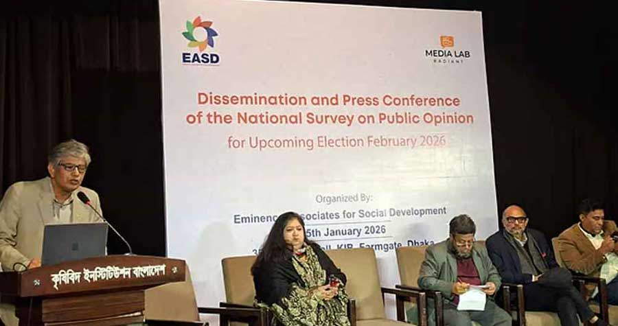 আসন্ন ত্রয়োদশ জাতীয় সংসদ নির্বাচনে মোট ৭০ শতাংশ ভোটার বিশ্বাস করেন, বিএনপিই হবে নির্বাচনের বিজয়ী দল। অন্যদিকে, জামায়াতে ইসলামীর পক্ষে জনমতের মাত্র ১৯ শতাংশ। এই জরিপটি পরিচালনা করেছে বেসরকারি সংস্থা এমিনেন্স অ্যাসোসিয়েটস ফর সোশ্যাল ডেভেলপমেন্ট (ইএএসডি)। সোমবার (৫ জানুয়ারি) বিকেলে রাজধানীর ফার্মগেটে কেআইবি মিলনায়তনে এই জরিপের ফলাফল প্রকাশ করেন ইএএসডির প্রধান নির্বাহী কর্মকর্তা শামীম হায়দার তালুকদার। তিনি জানান, দেশের মোট ৩০০টি সংসদীয় আসন থেকে সরাসরি ২০,০৪৫ জনের মতামত সংগ্রহ করা হয়েছে, যা গত বছরের ২০ ডিসেম্বর থেকে শুরু করে ১ জানুয়ারি পর্যন্ত চলেছে।
