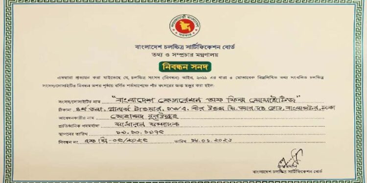 সরকারি নিবন্ধন পেল বাংলাদেশ ফেডারেশন অফ ফিল্ম সোসাইটিজ