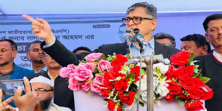 সালাহউদ্দিন আহমদ বলেন, আওয়ামী লীগের শাসনে দেশে বাকস্বাধীনতা ছিল না, মানুষ শান্তি ও নিরাপদ পরিবেশে ভোট দিতে পারত না। এখন সেই অধিকার ফিরিয়ে আনা হয়েছে। ‘‘এখন আমরা সবাই এই দেশেরই রাজা; জনগণই দেশের মালিক।’’ তিনি উপস্থিতদের আগামী ১২ ফেব্রুয়ারি ‘ধানের শীষ’ প্রতীকে ভোট দিয়ে নিজেদের মালিকানা ফেরত নিতে অনুরোধ করেন।